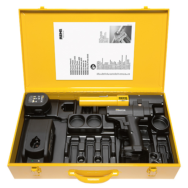 Akkumulátoros, axiális présgép, automatikus visszatéréssel, csúszóhüvelyes csatlakozáshoz, akkumulátor, koffer, töltő, 14,4 V, Li-Ion.