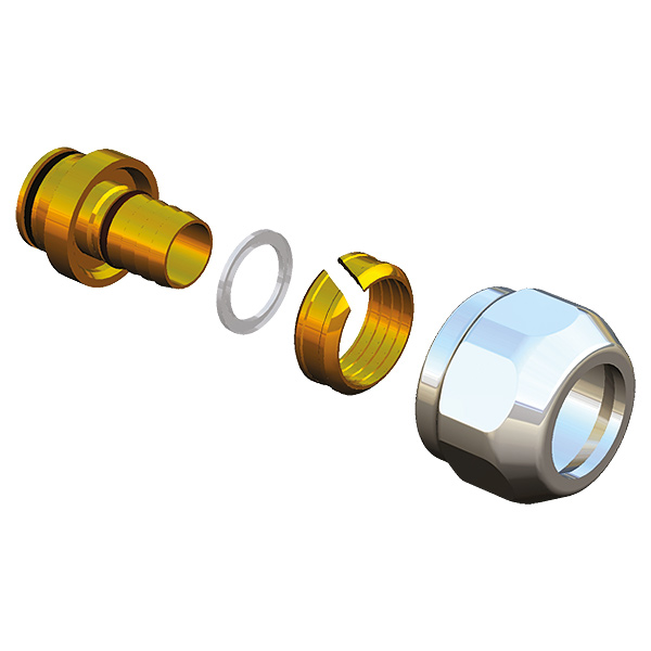 PE-X, PB- és ötrétegű csövekhez, csatlakozó méret: M 22 x 1,5. Krómozott kivitel.