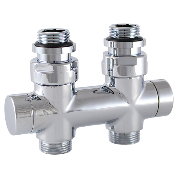 négyjáratú szelep egycsöves üzemre, előbeállítható, fehér kivitel, csatlakozó tengelytávolság - 50 mm, fűtőtest-csatlakozás G 3/4 - 1/2" hollandis, csőcsatlakozás M 22 x 1,5 kónuszos. Csatlakozó-csavarzat külön rendelendő!