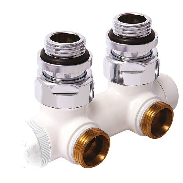 négyjáratú termosztatikus szelep egycsöves üzemre, előbeállítható, króm kivitel, csatlakozó tengelytávolság - 50 mm, fűtőtest-csatlakozás G 3/4 - 1/2" hollandis, termosztatikus fej csatlakozás M 28 x 1,5, csőcsatlakozás M 22 x 1,5 kónuszos. Csatlakozó-csavarzat külön rendelendő!