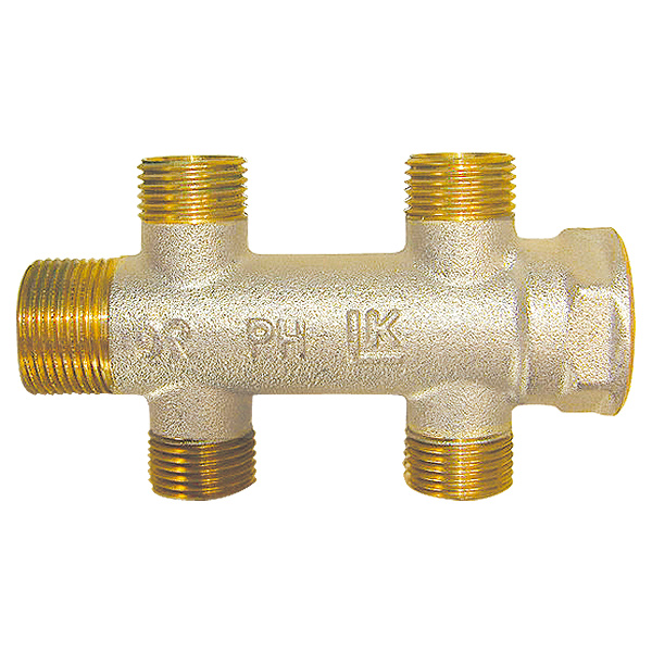 korrózióálló sárgarézből a DVGW-AB W 534 ajánlás szerint. Nikkelezett külső felület. Test: DN 20; kifolyók külső menete: G 1/2, kónuszos; csőközép: 50 mm.