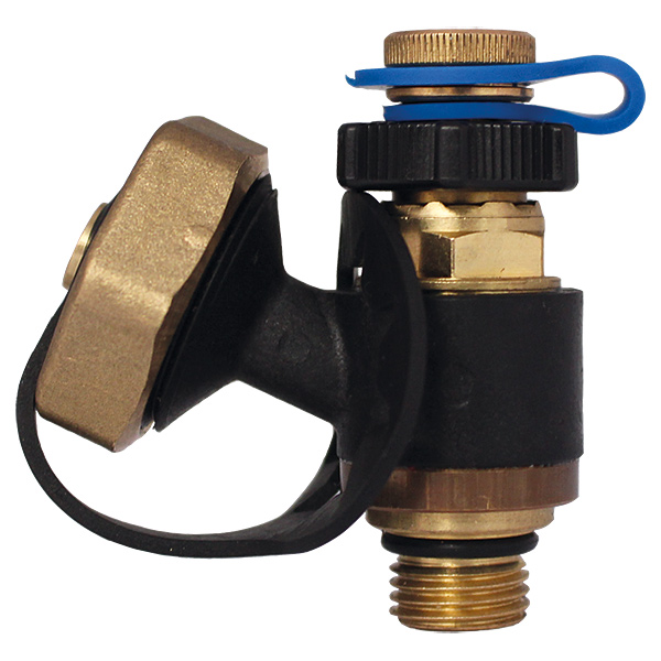 Sárgaréz kivitel, kék kupakkal (visszatérő), HERZ mérőkészülék csatlakoztatható hozzá.