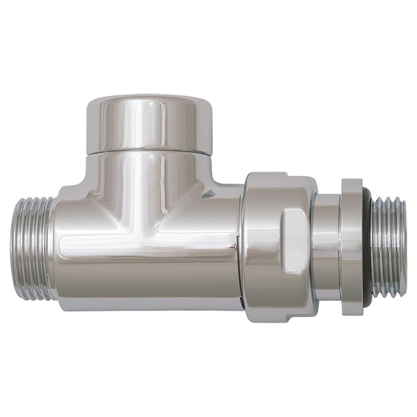 Szabályozó- és elzárószelep, fehér kivitel, fűtőtest csatlakozása kónusszal. Csőcsatlakozás M 22 x 1,5, kónuszos.