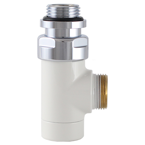 Szabályozó- és elzárószelep, fehér kivitel, fűtőtest csatlakozása kónusszal. Csőcsatlakozás M 22 x 1,5, kónuszos.