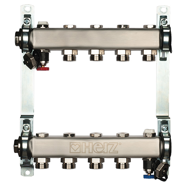 méret 1”, elzáró-szelepekkel a visszatérőben és az előremenőben. Légtelenítéssel és leeresztés tömlőcsatlakozással, elosztócsatlakozás belső Rp1 menettel, csőcsatlakozás G 3/4 eurokónuszos.