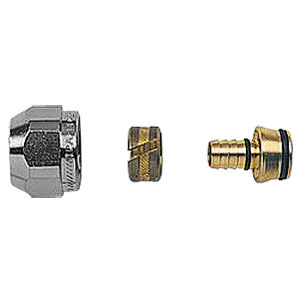 Alkatrészek: tömlőcsatlakozó, tömlőszorító gyűrű és M 22 x 1,5 kónuszos biztosítóanya.