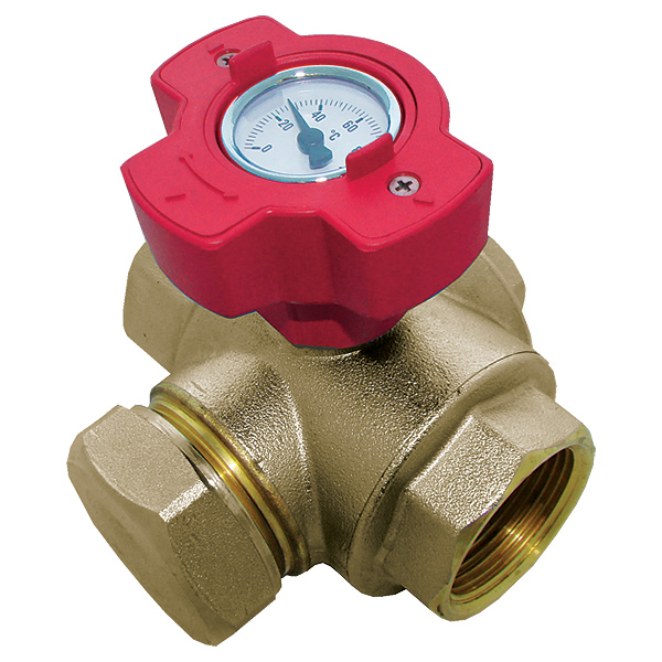 | 1 2414 03 | Multifunktionskugelhahn mit rotem Handrad und Thermometer 0–120°C |