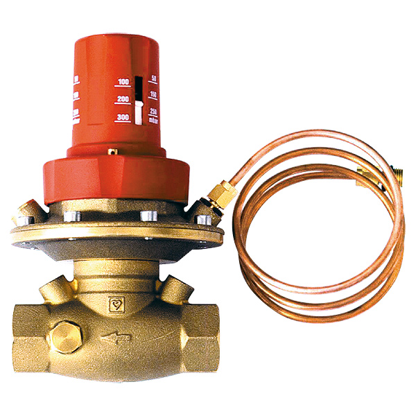 Segédenergia nélküli, arányos szabályozó kétcsöves, termosztát szelepes rendszerekhez. Sárgaréz kivitel, belső menet x belső menet, 1000 mm-es impulzusvezetékkel.