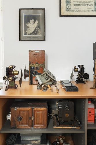 Der Kamera-Stativkopf trägt die Aufschrift „Wiener Kunst Film Akt. Ges“. Heute wissen nur noch Fachleute und Filmfans von diesem Unternehmen. Zu seiner Zeit hingegen war es weithin bekannt und noch mehr Leute kannten die Filme aus diesem Haus. Auf das Unternehmen ging der erste österreichische Spielfilm zurück, ebenso die erste österreichische Literaturverfilmung, auch der erste österreichische Filmstar wurde hier „gemacht“: Liane Haid.