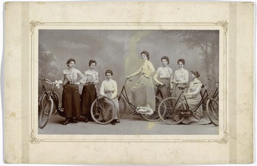 Um das Jahr 1900 suchten sieben junge Frauen das Atelier von Rosa Jenik, „K. u. k. Hof-Fotografin“, im 8. Bezirk auf. Wer die Frauen waren und warum sie sich mit ihren Rädern fotografieren ließen, wissen wir nicht. Lediglich dieses Foto hat sich in der Sammlung des Wien Museums erhalten. Vielleicht waren diese Mädchen Mitglieder in einem der zahlreichen Wiener Bicycle Clubs. Vermutlich verband sie ihre Freude am Fahrradfahren. Und ganz sicher teilten sie das Bestreben, sich nicht durch schiefe Blicke und anzügliche Witze davon abhalten zu lassen. Denn bis zum Ende des 19. Jahrhunderts meinten viele, dass diese Fortbewegungsart für Frauen „unschicklich“ sei. Manche fanden die Bekleidung der Radfahrerinnen unpassend. Andere vermuteten, dass radelnde Mädchen und Frauen ihre Gebärfähigkeit aufs Spiel setzten. Indem sich Frauen nicht von Vorurteilen und Konventionen in ihrer Bewegungsfreiheit einschränken ließen, haben sie den öffentlichen Raum Wiens grundlegend transformiert. Viele kleine Entscheidungen von vielen Einzelpersonen bewirkten eine gerechtere Nutzung des Stadtraums. Die Frauen auf dem Foto sind Teil dieses Prozesses.