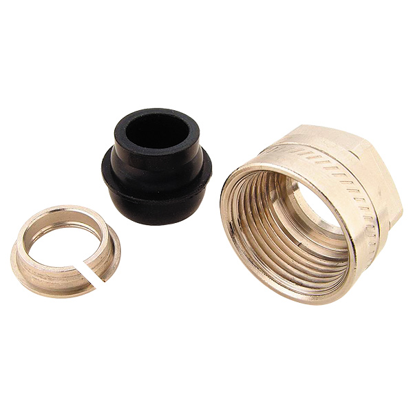 tartós gumitömítés (EPDM), G 3/4 szorítógyűrű anya. Nem használható krómozott fém- és nemesacél csövekkel.
